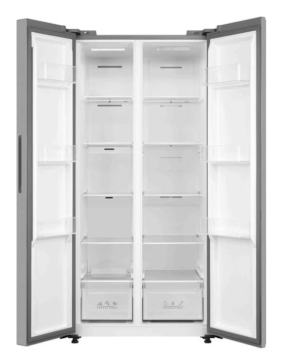 Comfeè RCS609IX2. Apparaatplaatsing: Vrijstaand, Productontwerp: Amerikaanse deur, Kleur van het product: Roestvrijstaal. Totale nettocapaciteit: 460 l, Klimaatklasse: N-ST, Geluidsemissieklasse: C. Nettocapaciteit koelkast: 271 l. Nettocapaciteit vriezer: 189 l, Vriezer positie: Ernaast, Vriescapaciteit: 12 kg/24u. Energie-efficiëntieklasse: E, Jaarlijks energieverbruik: 295 kWu, Energie-efficiëntieschaal: A tot G System.Collections.Generic.List`1[System.String]
