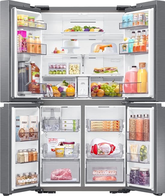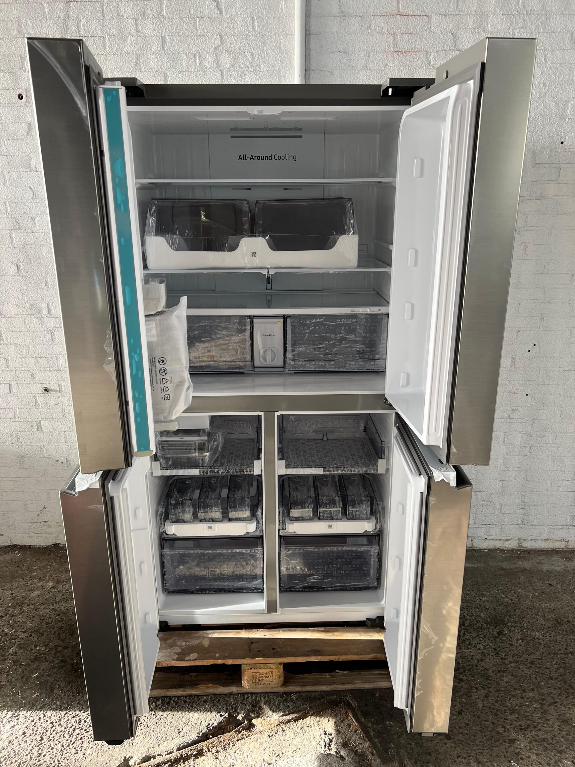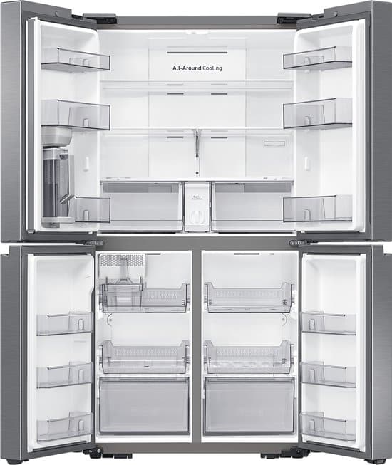 Samsung RF59C701ES9. Apparaatplaatsing: Vrijstaand, Productontwerp: Frans deur, Kleur van het product: Zilver. Totale nettocapaciteit: 649 l, Klimaatklasse: SN-T, Geluidsemissieklasse: C. Nettocapaciteit koelkast: 390 l, Soort lamp: LED. Nettocapaciteit vriezer: 269 l, Vriezer positie: Onder, Vriescapaciteit: 12 kg/24u. Snoerlengte: 2,1 m System.Collections.Generic.List`1[System.String]