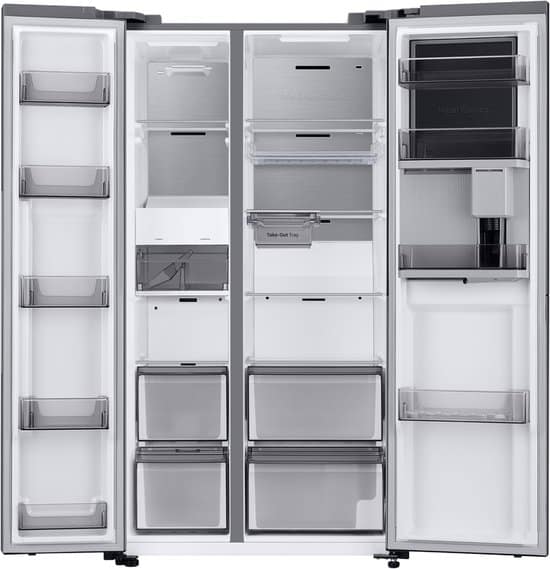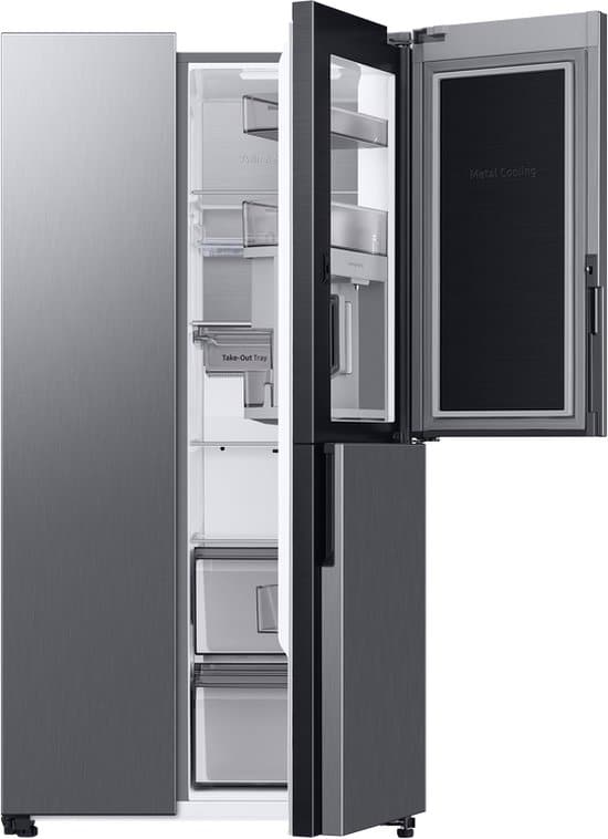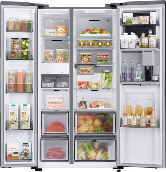 Samsung RH69CG895DS9. Apparaatplaatsing: Vrijstaand, Productontwerp: Amerikaanse deur, Kleur van het product: Roestvrijstaal. Totale nettocapaciteit: 645 l, Klimaatklasse: SN-T, Geluidsemissieklasse: B. Nettocapaciteit koelkast: 403 l. Nettocapaciteit vriezer: 242 l, Vriezer positie: Ernaast, Vriescapaciteit: 15 kg/24u. Bedieningsapps ondersteund: Samsung SmartThings System.Collections.Generic.List`1[System.String]
