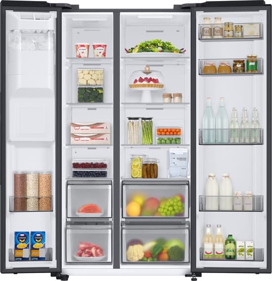Samsung RS6GA8521B1/EG. Apparaatplaatsing: Vrijstaand, Productontwerp: Amerikaanse deur, Kleur van het product: Zwart. Totale nettocapaciteit: 634 l, Klimaatklasse: SN-T, Geluidsemissieklasse: C. Nettocapaciteit koelkast: 409 l, Soort lamp: LED. Nettocapaciteit vriezer: 225 l, Vriezer positie: Ernaast, Vriescapaciteit: 12 kg/24u. Energie-efficiëntieklasse: E, Jaarlijks energieverbruik: 351 kWu, Energie-efficiëntieschaal: A tot G System.Collections.Generic.List`1[System.String]