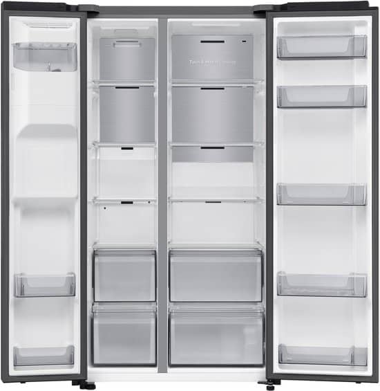 Geniet van koele drankjes of ijs zonder steeds een watertank te moeten bijvullen. Aan de voorkant is een water- en ijsdispenser geplaatst, die eenvoudig kan worden aangesloten op een waterleiding. Dus met een druk op de knop krijg je een glas gekoeld water of een heleboel ijs om drankjes, zoals sapjes, te koelen.