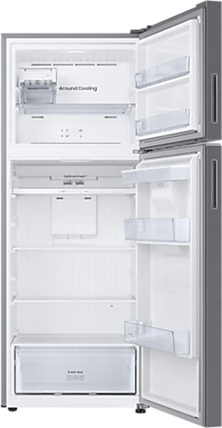 combikoelkast 70cm 462l nofrost – samsung – RT47CG6726S9 – De Samsung RT47CG6726S9 combikoelkast met Ventilated Cold-technologie zorgt voor een betere bewaring van voedsel dankzij een verschillend vochtigheidsniveau tussen de vriezer en de koelkast. Het Multi-flow systeem zorgt voor een gelijkmatige verdeling van de kou in de holle ruimten en voorkomt vorstvorming. Combi – linksboven. Space MaxTM-isolatietechnologie maakt het mogelijk om dunnere wanden te hebben en daardoor de binnencapaciteit te vergroten met behoud van dezelfde voetafdruk. De Fresh Zone biedt een lagere temperatuur dan de koelkastruimte, waardoor voedsel zoals vlees en vis daar kunnen worden bewaard. – Producttype: 2-deurs koelkast