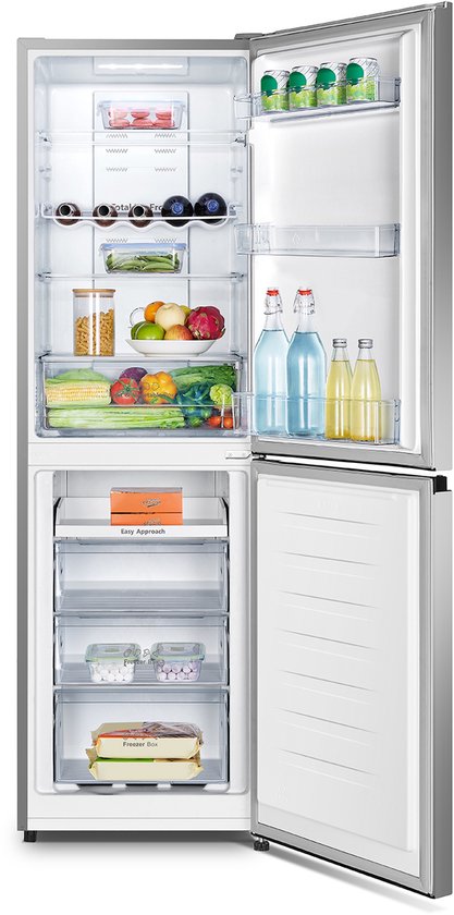 Hisense RB327N4AD2. Totale nettocapaciteit: 256 l. Deurscharnieren: Rechts, Type beeldscherm: LED. Klimaatklasse: SN-T, Geluidsniveau: 37 dB. Nettocapaciteit koelkast: 171 l, No Frost (koelkast), Koelkast binnenverlichting, Aantal planken koelkast: 3. Nettocapaciteit vriezer: 85 l, Vriescapaciteit: 9 kg/24u, No Frost (vriezer). Energie-efficiëntieklasse: E, Jaarlijks energieverbruik: 226 kWu. Kleur van het product: Zilver