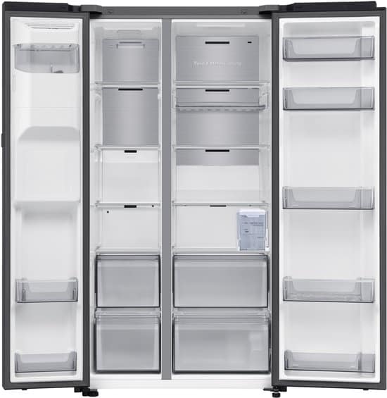 Samsung Series 8 RS80F67KCF. Apparaatplaatsing: Vrijstaand, Productontwerp: Amerikaanse deur, Kleur van het product: Zwart. Totale nettocapaciteit: 634 l, Klimaatklasse: N-ST, Geluidsemissieklasse: C. Nettocapaciteit koelkast: 409 l, Koelkast temperatuurbereik: 1 – 7 °C, Soort lamp: LED. Nettocapaciteit vriezer: 225 l, Vriezer positie: Ernaast, Vriescapaciteit: 13 kg/24u. Bedieningsapps ondersteund: SmartThings System.Collections.Generic.List`1[System.String]