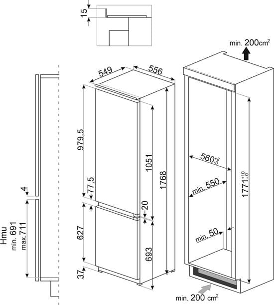 | Model | Smeg C8174DN2E koel-vriescombinatie Ingebouwd 248 l E Wit |