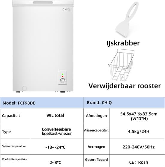Klein Vrieskist 99L 39 dB – 12 Jaar Garantie op Compressor