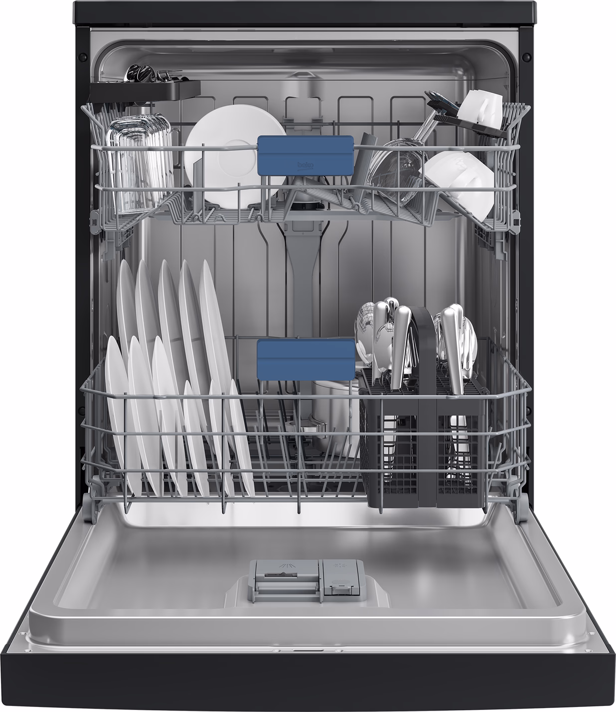 Je wast 14 couverts vuile vaat energiezuinig schoon met de Beko BDFN26450A vrijstaande vaatwasser. Onder in de vaatwasser heb je ruimte voor pannen, borden en schalen. Je bestek leg je in de bestekmand. Glazen en mokken zet je in de bovenste korf. Heb je een hoge soeppan? Dan verstel je de bovenste korf gemakkelijk naar boven. Wanneer je een ovenschaal met aangekoekte resten hebt, zet je deze in de intensieve zone en gebruik je het 70 graden programma. Zo krijg je al je vaat goed schoon. Heb je visite? Gebruik dan één van de snelle programma’s. Hiermee heb je snel schone glazen in huis. Na het programma opent de deur. Zo drogen ook je plastic bakjes.