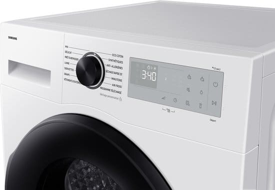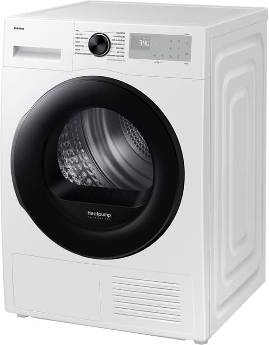 Samsung DV90DG52A0AH, Vrijstaand, Warmtepomp, Wit, Rechts, Frans Display